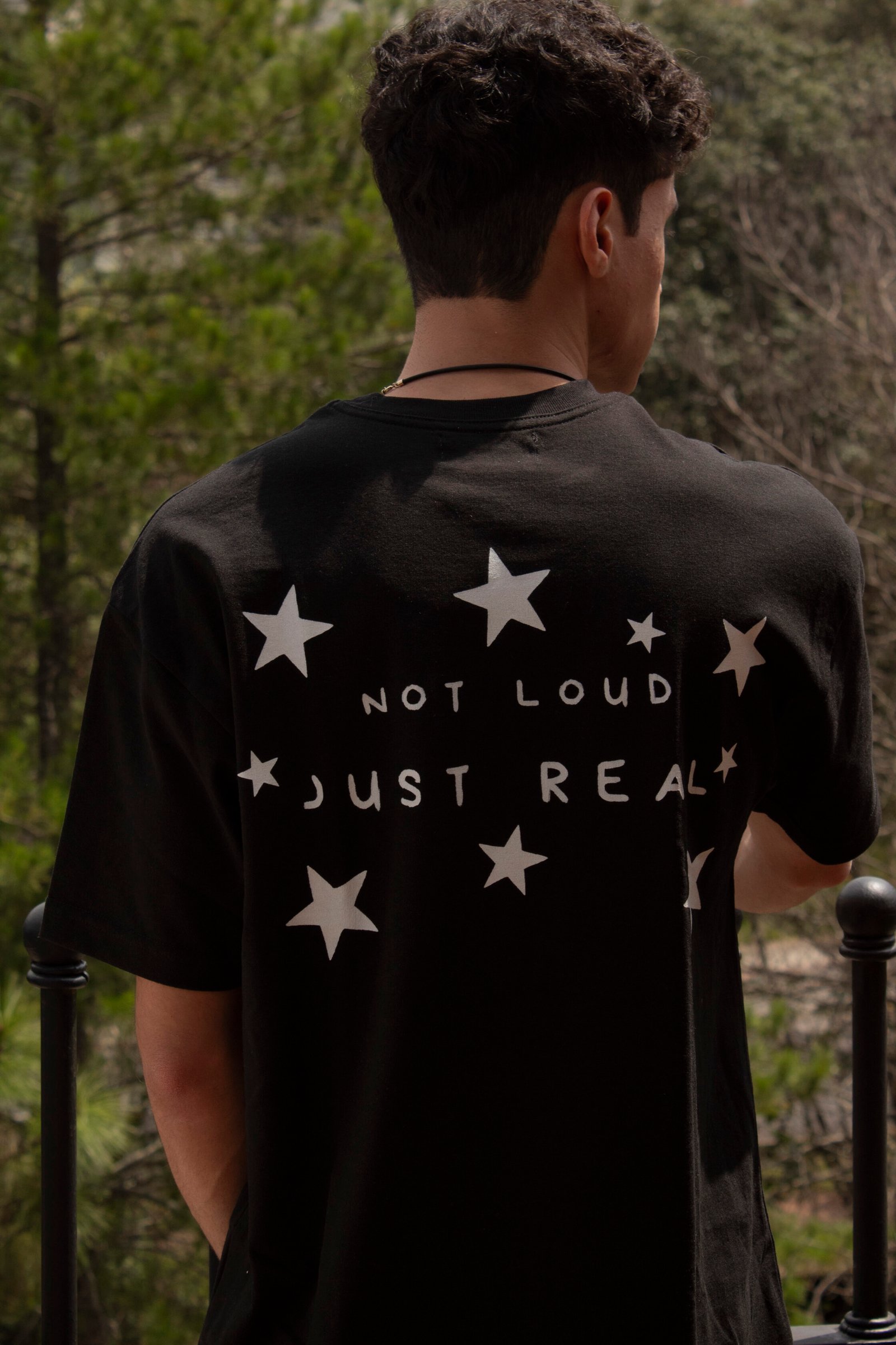 Back print with stars and bold brand message